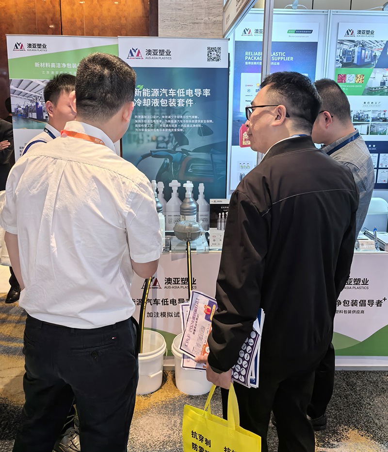 展會期間,澳亞展臺吸引了眾多業(yè)內(nèi)人士的關(guān)注,更有不少嘉賓對澳亞塑業(yè)展示的新能源汽車低電導(dǎo)率冷卻液包裝套件表現(xiàn)出了濃厚興趣;該產(chǎn)品是專為新能源汽車?yán)鋮s液包裝與加注而設(shè)計(jì)開發(fā),為新能源汽車?yán)鋮s液保持低電導(dǎo)率和安全加注提供了創(chuàng)新的解決方案。